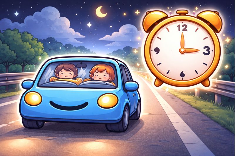 If your road trip is longer than 5 hours, it’s best to start early — around 3:00 a.m. While driving, kids usually sleep until about 7:00 a.m., giving the driver calm and quiet roads. After a short toilet stop, you’ll need only a little more time to reach your destination, and by 8:00–9:00 a.m. it’s perfect to stop for breakfast. This makes long trips easier, calmer, and more enjoyable for everyone.
